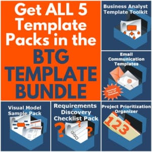 **If you’d like to expand your business analyst toolbox, take a look at our business analyst templates. At $97 for each toolkit (or $347 for the Bundle of all 5), these provide an affordable way to bring a wider variety of techniques to your business analysis work.**