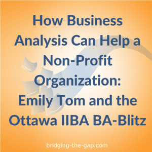 - How to establish the value of business analysis in a non-profit organization (and why it’s important to do this even when you are volunteering your time).