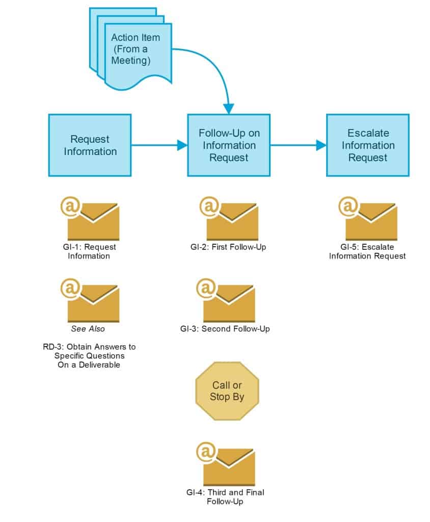 Here’s a quick visual map you can use to remember what pieces of communication to consider sending on a project when it comes to getting information.