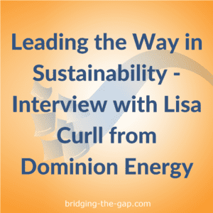 Today we meet Lisa Curll – Business Performance Analyst managing sustainability projects at Dominion Energy. She has so much wisdom to share with you – I invite you to jump right in.