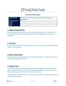 - To assist you in this process, we offer another great resource at no cost to you, which is our use case template. You can download the exact template that you see above. This is specifically designed to help you capture and document use cases effectively. By using this template, you can ensure that no requirement is missed and gain a lot of clarity on the interactions between the system and its users. Click below to claim your free use case template download.